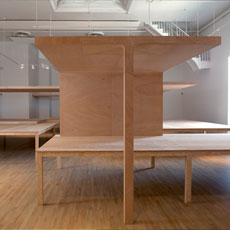 Architecture is often at stake in the work of the Montreal artist Alexandre David. Indeed his work seems to take architecture, from its representation in drawing form to its perception by the viewer, as the starting point for thinking about our relationship with the built world. David does not work on essence but rather carries out transformations of and additions to space, creating a discrepancy between form and matter from the drawing to the experience. In keeping with this practice, the exhibition of his work presented at EXPRESSION is conceived as the generation of a site, with its open and closed spaces, which takes shape through the use of objects in the gallery space. Only by moving through this constructed space can the visitor discover each of the elements making up the whole.